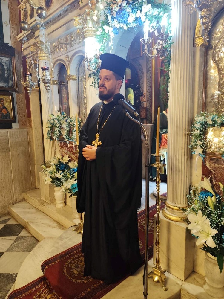Το θείο λόγο εκήρυξε ο Προϊστάμενος του Ιερού Καθεδρικού Ναού Αγίου Νικολάου Ερμουπόλεως, Αρχιμ. Βενέδικτος Φραγκογιάννης, ο οποίος, αφού μετέφερε τις ευλογίες του απουσιάζοντος στην Σέριφο Σεβασμιωτάτου κ. Δωρόθεου Β’, ομίλησε με θέμα «Στώμεν Καλώς», αναφερθείς στο περιεχόμενο και τα μηνύματα προς το σύγχρονο άνθρωπο της εορτής της Συνάξεως των Ασωμάτων Δυνάμεων.