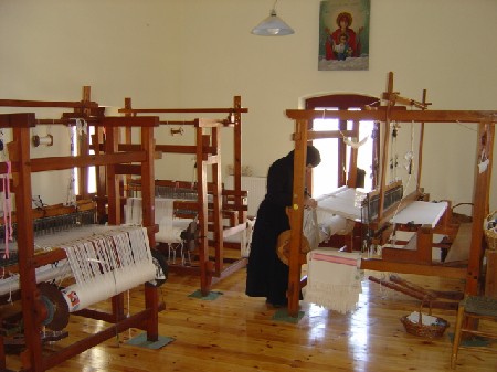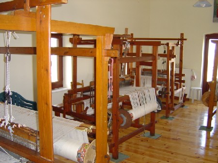 Υπάρχει εργαστήριο και έκθεση πώλησης χειροποίητων υφαντών.
