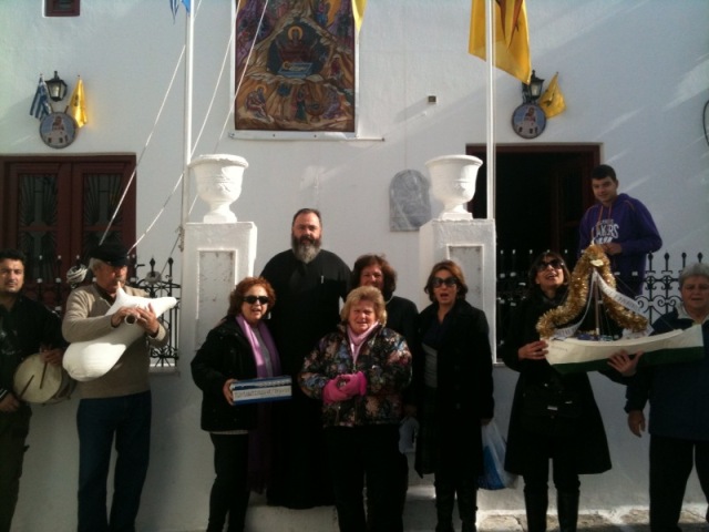 Τα πρωτοχρονιάτικα κάλαντα από το σύλλογο γυναικών Μυκόνου στο Αρχιερατικό Επίτροπο Μυκόνου, Πρωτοπρ. Βασίλειο Τζανιδάκη.Ιερά Μητρόπολις Σύρου, Τήνου, Άνδρου, Κέας, Μυκόνου, Μήλου, Σίφνου, Σερίφου, Κιμώλου, Κύθνου, Φολεγάνδρου, Σίκινου