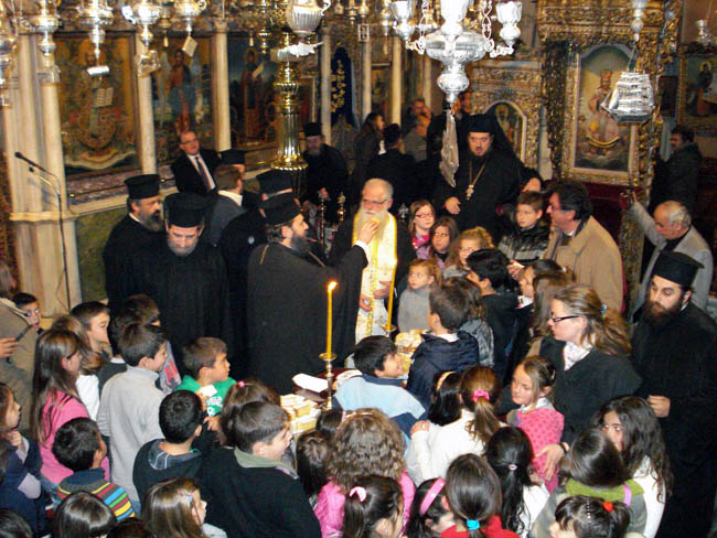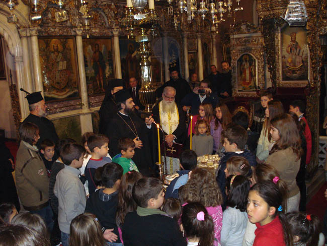 Τελέσθηκε σήμερα, με την ευλογία του Σεβ. Μητροπολίτου Σύρου-Τήνου και Προέδρου του Πανελληνίου Ιερού Ιδρύματος Ευαγγελιστρίας (ΠΙΙΕΤ) κ. Δωροθέου Β΄, Εσπερινός και τελετή κοπής Αγιοβασιλειόπιτας, στον Πανίερο Ναό της Μεγαλόχαρης, για τα παιδιά των Χριστιανικών Κατηχητικών ομάδων της ιεράς νήσου Τήνου όλων των βαθμίδων, Προσχολικού, Κατωτέρου, Μέσου και Ανωτέρου, καθώς και για τους δύο συλλόγους "Παναγία η Ελεούσα" και "Παναγία η Οδηγήτρια".