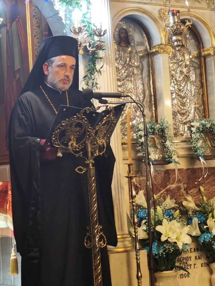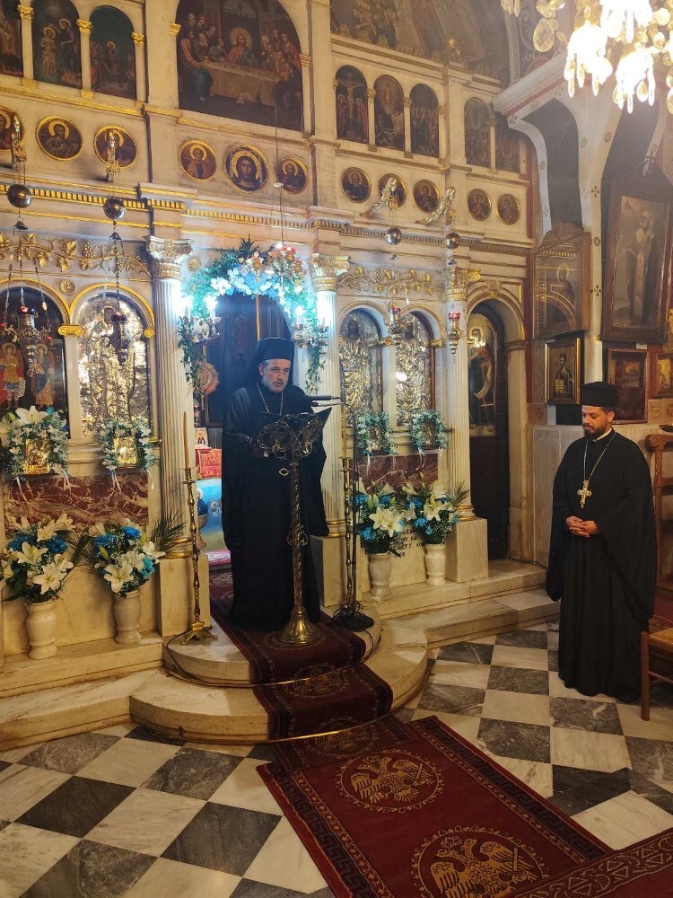 Το θείο λόγο εκήρυξε ο Προϊστάμενος του Ιερού Καθεδρικού Ναού Αγίου Νικολάου Ερμουπόλεως, Αρχιμ. Βενέδικτος Φραγκογιάννης, ο οποίος, αφού μετέφερε τις ευλογίες του απουσιάζοντος στην Σέριφο Σεβασμιωτάτου κ. Δωρόθεου Β’, ομίλησε με θέμα «Στώμεν Καλώς», αναφερθείς στο περιεχόμενο και τα μηνύματα προς το σύγχρονο άνθρωπο της εορτής της Συνάξεως των Ασωμάτων Δυνάμεων.