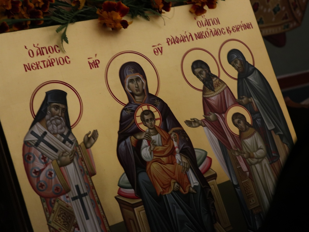 Άμα τη αφίξει του, μετέβη στην Παλαιόπολη, όπου, με τη συμμετοχή του Εφημερίου της Παλαιοπόλεως Πρωτοπρ. Ιωάννου και των γνωστών της κτήτορος, Αρχιμ. Νεκταρίου και Πρωτοπρ. Κωνσταντίνου, τέλεσε τα Θυρανοίξια ιερού Παρεκκλησίου, τιμώμενου στο όνομα των Αγίων Ραφαήλ, Νεκταρίου και της Παναγίας, της επικαλουμένης «Γιάτρισσας», το οποίο ανήγειρε η κα Αικατερίνη Ζρέκ, μεγάλη Ευεργέτις, μαζί με τον αοίδιμο σύζυγό της Αλέξανδρο, της περιοχής.