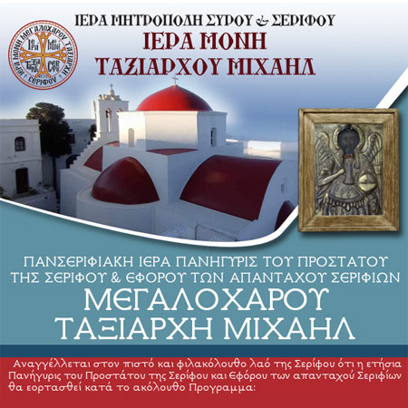 Ιερά Μονή Ταξιάρχου Μιχαήλ Προστάτου της Σερίφου Πρόγραμμα Εορτής Παρασκευή 7 και Σάββατο 8 Νοεμβρίου