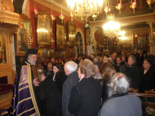 Τη Δευτέρα, 28 Φεβρουαρίου, ο Σεβασμιώτατος έπλευσε προς ΦΟΛΕΓΑΝΔΡΟ και το απόγευμα τέλεσε τον Πανηγυρικό Εσπερινό στον εορτάζοντα Ι. Ναό της Παναγίας, της επιλεγομένης «Μαρτιάτισσας».
