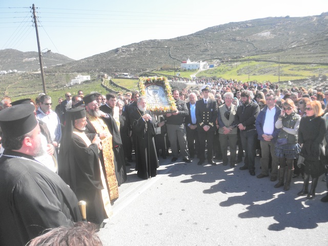 Επί τρίωρων ο λαός της Μυκόνου, προεξάρχοντος του Μητροπολίτου Δωροθέου, λιτάνευσε την εικόνα της Παναγίας της Τουρλιανής σε όλο το νησί.