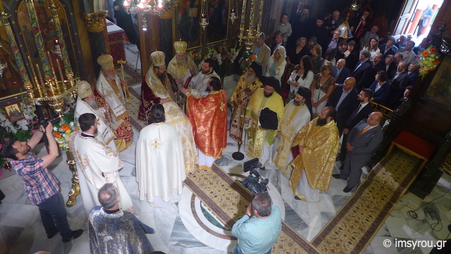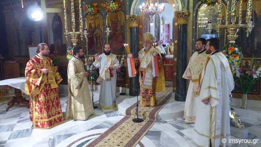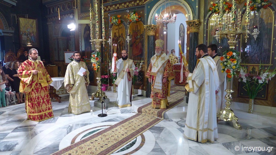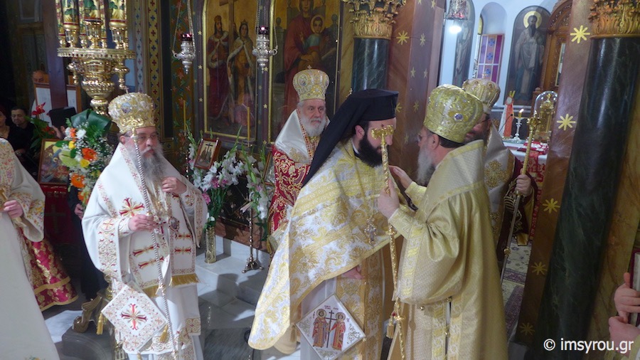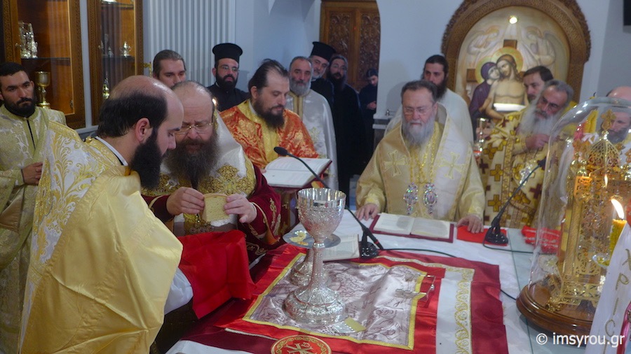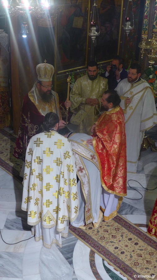 Κατά τη διάρκεια της Θείας Λειτουργίας, ο Σεβασμιώτατος Μητρπολίτης Μεγάρων κ. Κωνσταντίνος ετέλεσε την εις Πρεσβύτερο Χειροτονία του Διακόνου Κωνσταντίνου, προς τον οποίο απηύθυνε πατρικές νουθεσίες και συμβουλές για τη διακονία του,λέγοντάς του χαρακτηριστικά να αντιμετωπίσει τους ορατούς και αόρατους εχθρούς του Θεού και της Εκκλησίας, τις δυσκολίες και τα προβλήματα, που θα συναντήσει με το σύμβολο του Σταυρού, "Εν τούτω νίκα ",μένοντας πιστός στις παραδόσεις, όπως τις παραλάβαμε από τους πατέρες μας.
