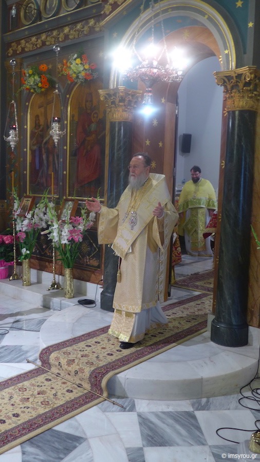 Ο Σεβασμιώτατος κ. Κωνσταντίνος ευχαρίστησε τους παρισταμένους Αρχιερείς,την κα Δήμαρχο Μάνδρας και τους παρόντες Δημοτικούς Συμβούλους,τον ευσεβή λαό, που είχε κατακλύσει τον Ιερό Ναό, τον Εφημεριό του π. Μακάριο, για τη μέριμνα και τη φροντίδα του προς αυτόν.