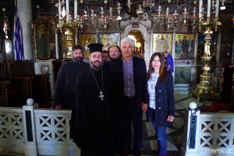 Ο Αρχιερατικός Επίτροπος της ιεράς νήσου Πρωτοπρ. Γεώργιος Φανερός τον υποδέχθηκε εκ μέρους του Σεβασμιωτάτου Ποιμενάρχου μας κ. Δωροθέου Β' και μετέφερε τις ευλογίες του ευχόμενος υγεία και καλές επιτυχίες.
