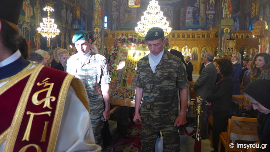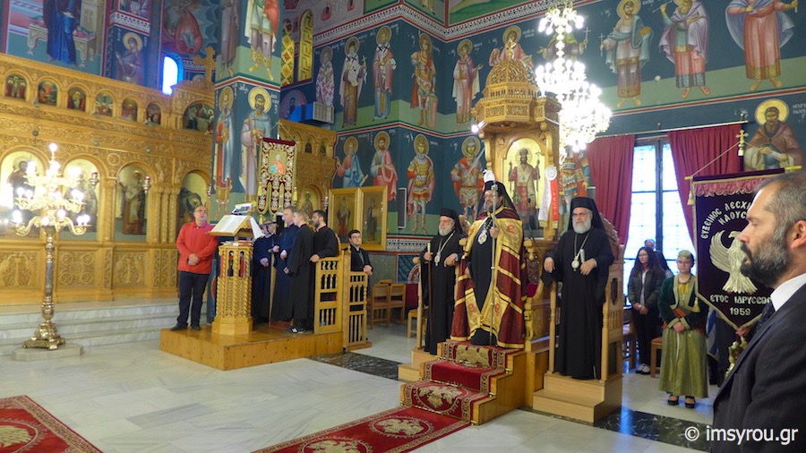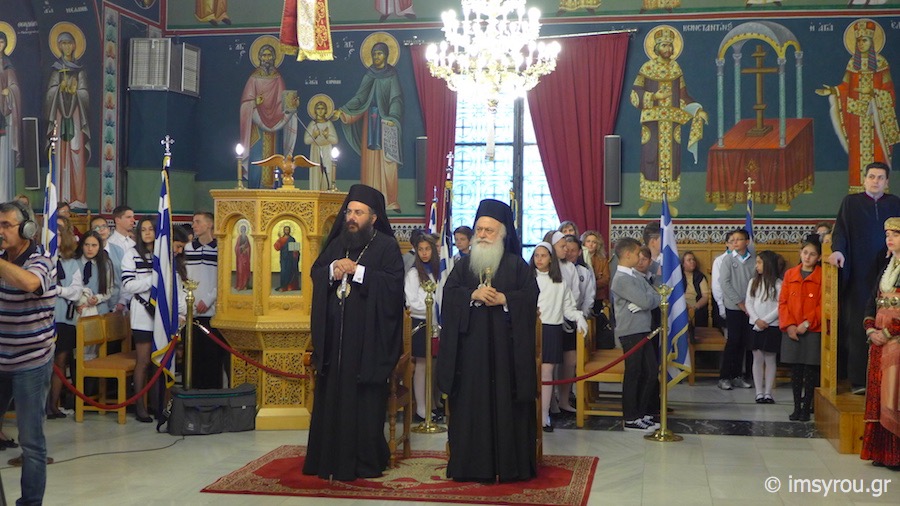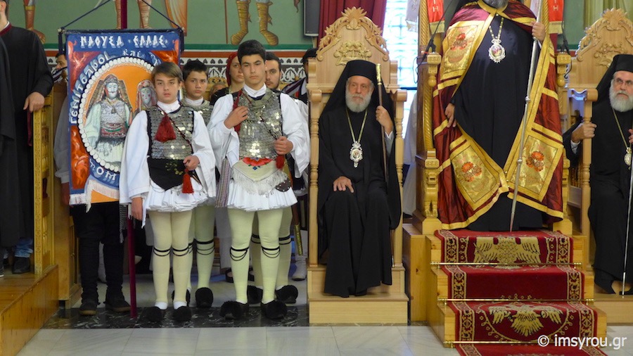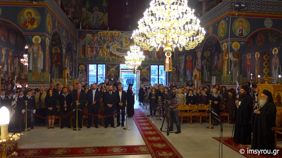 Το εσπέρας, τελέσθηκε Πολυαρχιερατικός Εσπερινός στον Ιερό Μητροπολιτικό Ναό του Αγίου Μηνά, χοροστατήσαντος του Σεβασμιωτάτου Μητροπολίτου Μεσσηνίας κ. Χρυσοστόμου,με τη συμμετοχή των Σεβασμιωτάτων Μητροπολιτών Βεροίας & Ναούσης κ. Παντελεήμονος, Σύρου κ. Δωροθέου Β', Ιλίου κ.Αθηναγόρα και Τρίκκης κ. Χρυσοστόμου, παρουσία του Δημάρχου Ναούσης κ.Νικολάου Κουτσογιάννη, Αντιδημάρχων των Δήμων Βεροίας και Θεσσαλονίκης, Δημοτικών Συμβούλων, του Στρατηγού- Διοικητή της 2η Μοίρας Καταδρομών, του Διοικητή της Πυροσβεστικής, μαθητών με τις σημαίες τους, Πολιτιστικών Συλλόγων με τα λάβαρά τουςκαι πλήθους Ναουσαίων.