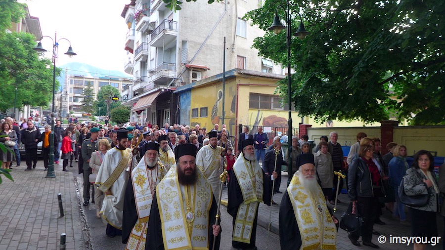 Στη συνέχεια, πραγματοποιήθηκε λιτάνευση της ιεράς Εικόνας των Ναουσαίων Νεομαρτύρων, πλαισιουμένη από τη Δημοτική Φιλαρμονική Ναούσης, στόν κήπο "Κιόσκι", όπου ετελέσθη Αρτοκλασία, ο Σεβασμιώτατος Μητροπολίτης Βεροίας κ. Παντελεήμων προσεφώνησε τους Αρχιερείς και ομίλησε ο Σεβασμιώτατος Μητροπολίτης Μεσσηνίας κ.Χρυσόστομος.