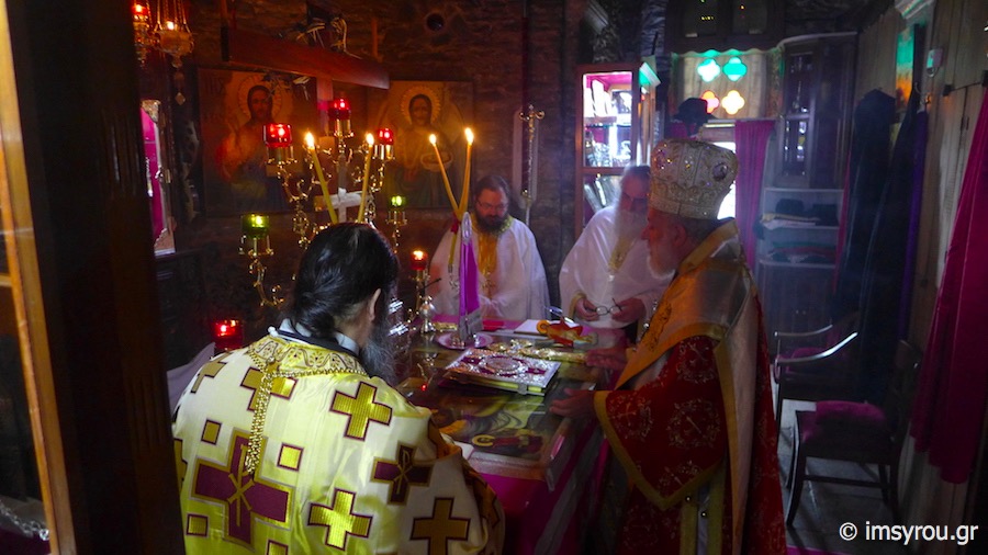 Στο Καθολικό της Ιεράς Μονής του Αγίου Νικολάου Άνδρου ιερούργησε σήμερα το πρωί ο Σεβασμιώτατος κ. Δωρόθεος Β΄, επί τη αναμνήσει της Ανακομιδής των Λειψάνων του Αγίου Νικολάου, ιερά αποτμήματα των οποίων και φυλάσσονται στην Ιερά Μονή, συμπαραστατούμενος από την ιερά Αδελφότητα της Μονής και παρουσία πολλών πιστών.