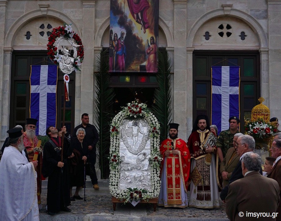Μετά το πέρας της Θείας Λειτουργίας, ακολούθησε η λιτάνευση της ιεράς εικόνος, πλαισιουμένης από προσκόπους, τα παιδιά του Κατηχητικού Σχολείου της Ενορίας και μέλη του Πολιτιστικού Συλλόγου Αναστάσεως.