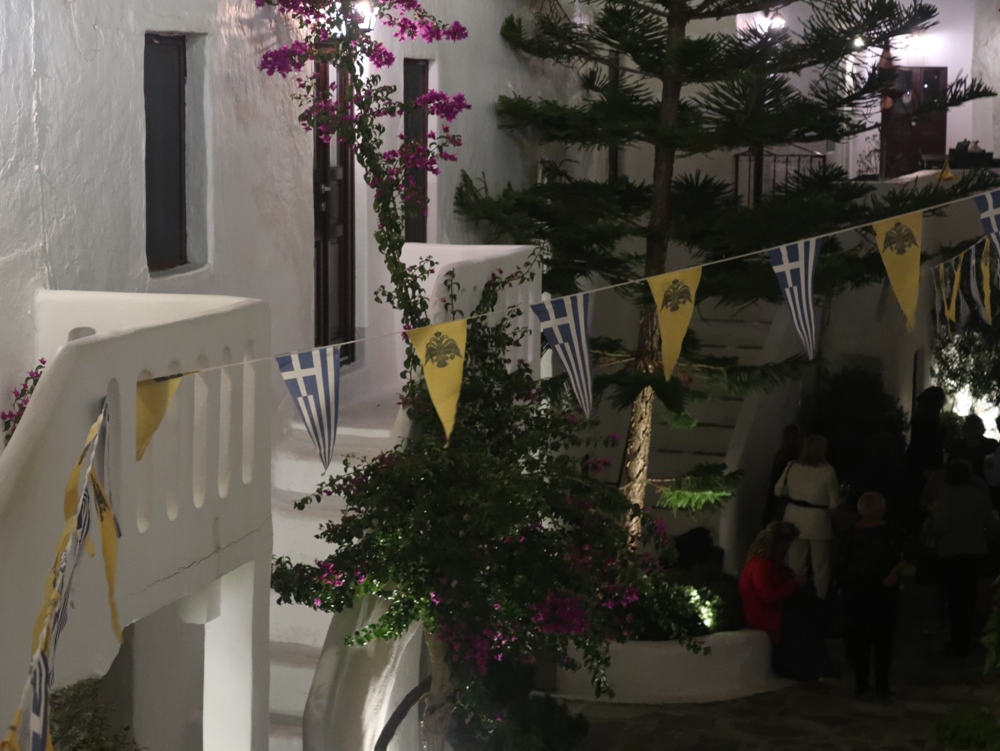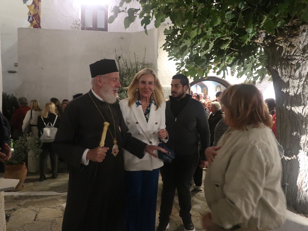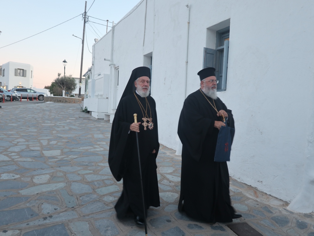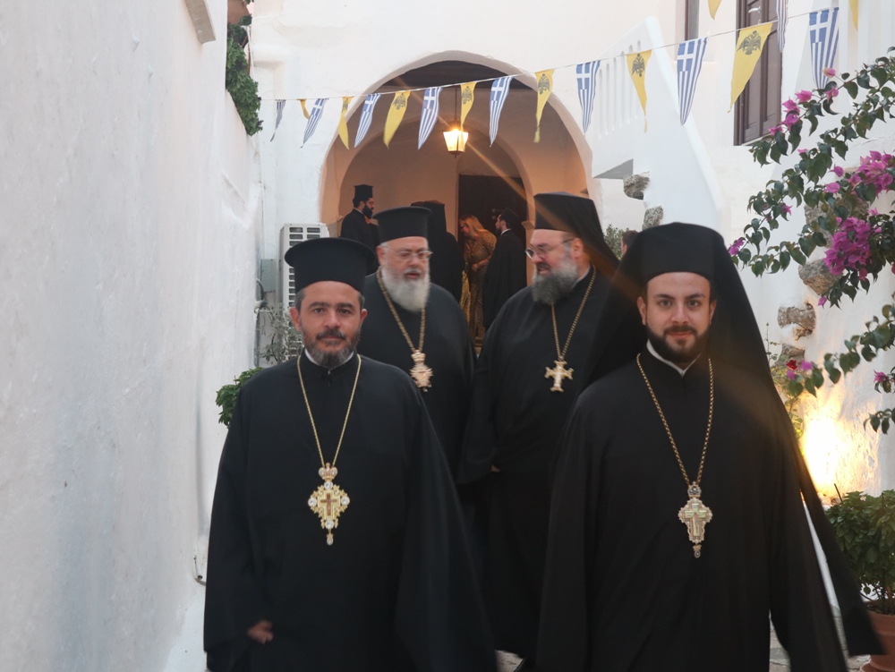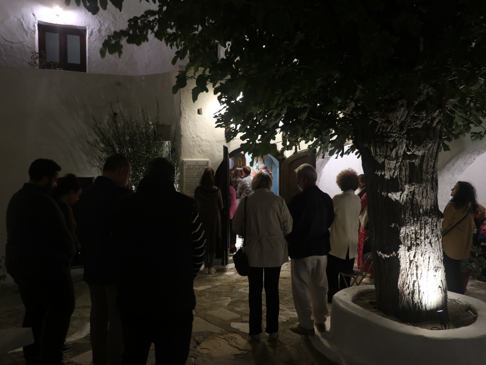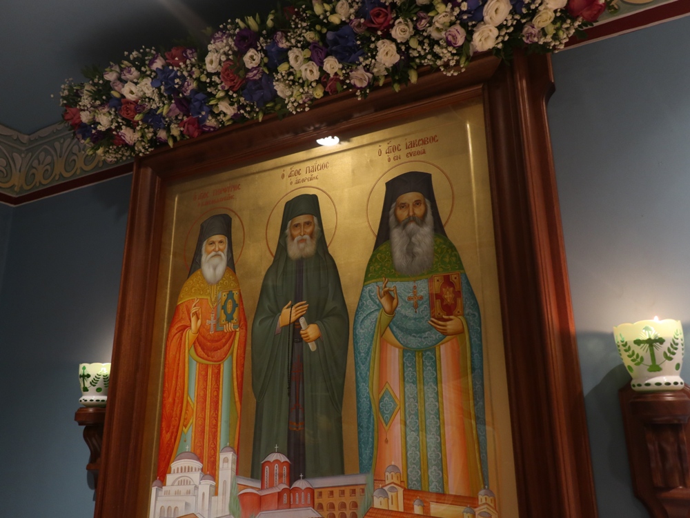 Στο εγκαινιασθέν, χερσί των Σεβασμιωτάτων Μητροπολιτών Βεροίας κ. Παντελεήμονος και Σύρου κ. Δωροθέου Β’, την 15 Οκτωβρίου 2021 ιερό παρεκκλήσιο των Τριών Νεοφανών Οσίων Πορφυρίου του Καυσοκαλυβίτου, Παϊσίου του Αγιορείτου και Ιακώβου του "Με συγχωρείτε", το οποίο διαμόρφωσε ο δραστήριος Ηγούμενος της Ιεράς Μονής Παναγίας Τουρλιανής Μυκόνου, εντός του συγκροτήματός της, τελέσθηκε απόψε Αρχιερατικός Πανηγυρικός Εσπερινός, προεξάρχοντος του Σεβασμιωτάτου κ. Δωροθέου Β’ , με τη συμμετοχή του Ηγουμένου της Μονής, Αρχιμ. Αλεξίου Παπαδόπουλου, των Εφημερίων της Μυκόνου και παρεπιδημούντων Κληρικών, και με την παρουσία της Βουλευτού Κυκλάδων κας Αικατερίνης Μονογυιού, Αξιωματικών του Λιμενικού Σώματος, της Προέδρου της Αδελφότητος Ανωμεριτών , και πολλών φιλευσεβών Μυκονίων.