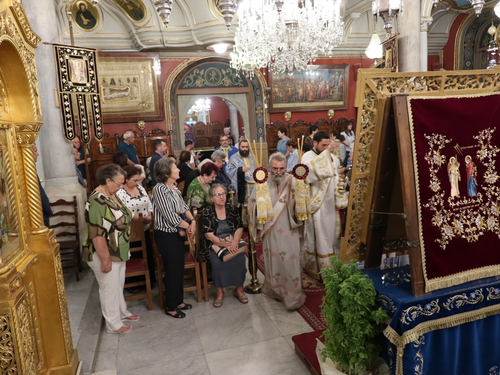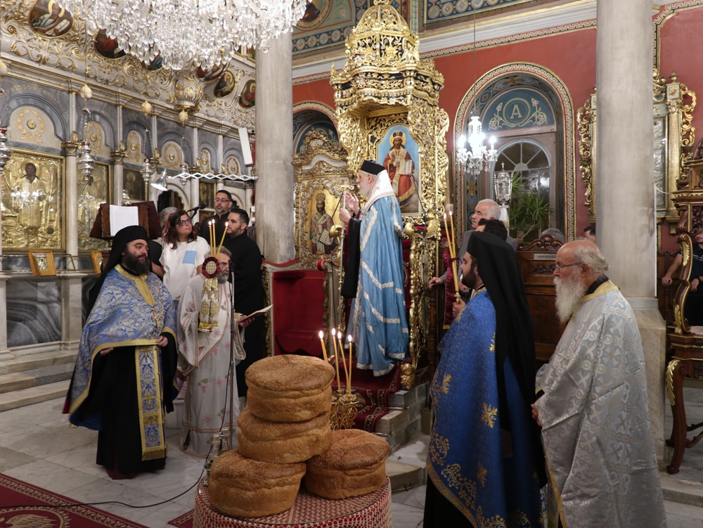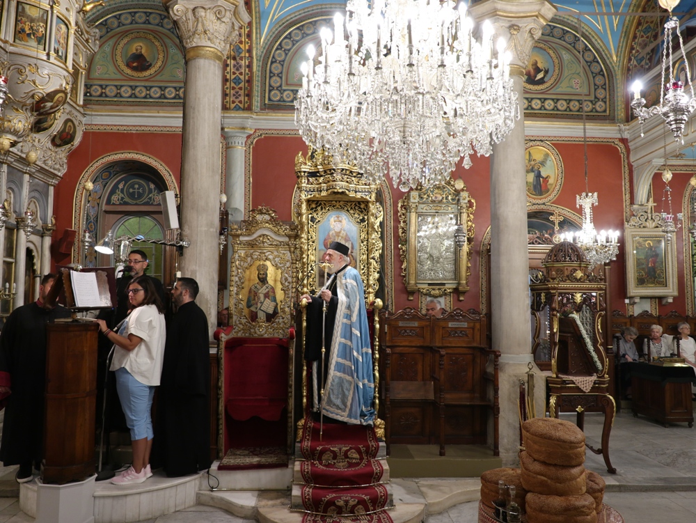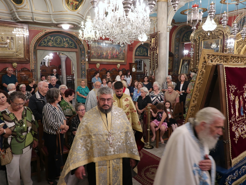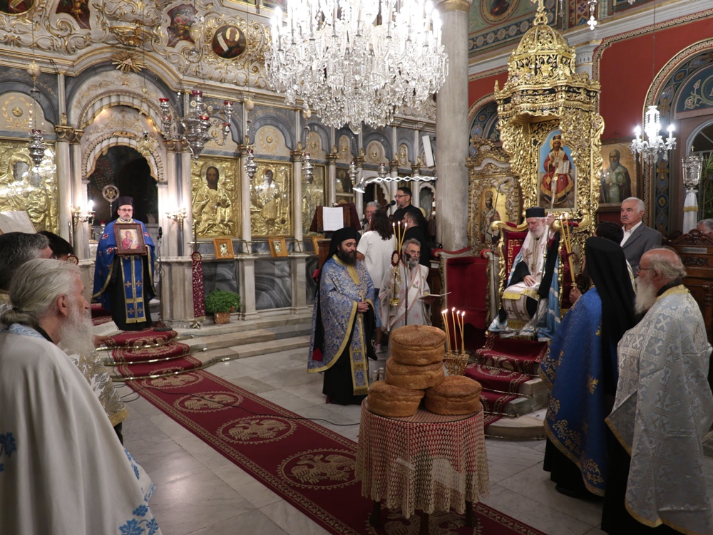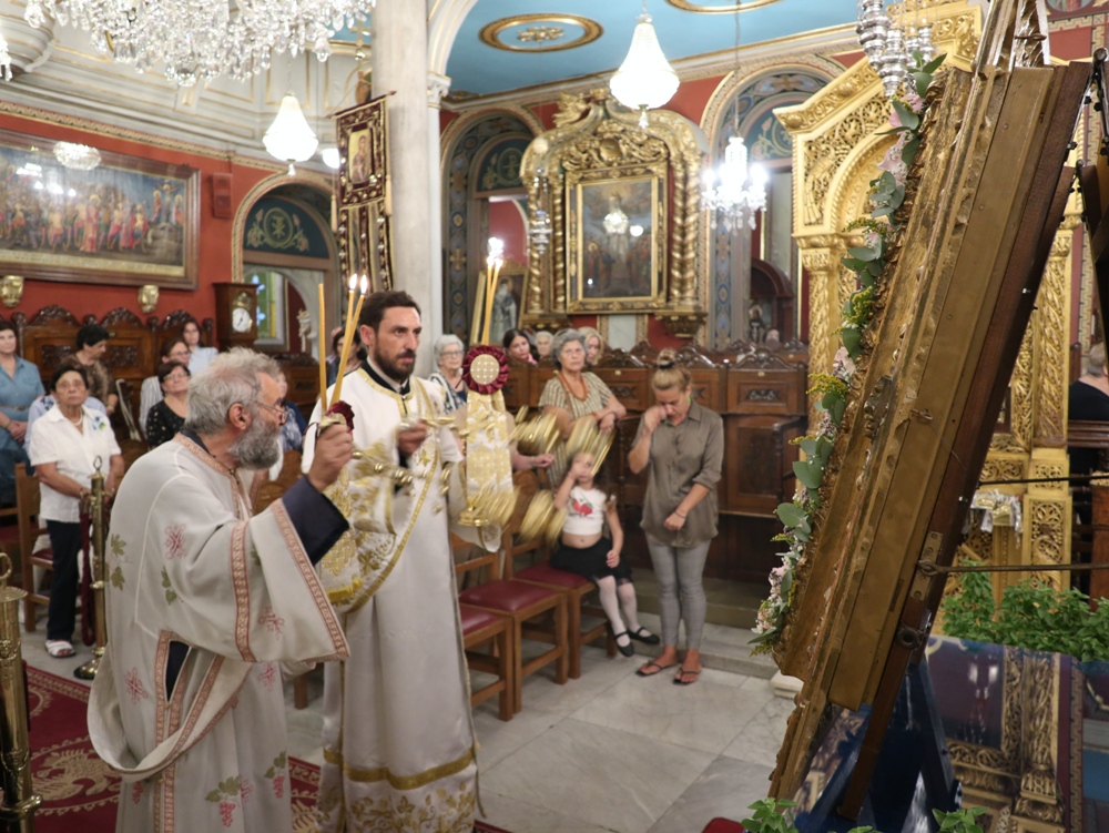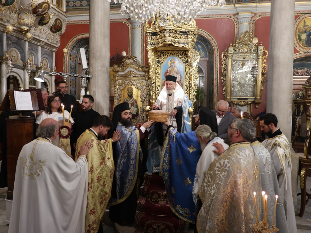 Στον Ιερό Μητροπολιτικό Ναό της Μεταμορφώσεως του Σωτήρος, στην Ερμούπολη, όπου φυλάσσεται από το 1955 η θαυματουργή Εικόνα της Παναγίας της Φανερωμένης, έργο του μεγάλου Αγιογράφου Δημητρίου Γκαφή και έκφραση ευχαριστιών των Ερμουπολιτών προς τη Θεοτόκο, μετά την αποχώρηση των δυνάμεων Κατοχής από το νησί, για τη διάσωσή του από βομβαρδισμούς και καταστροφές, τελέσθηκε χθες Αρχιερατικός Εσπερινός, χοροστατούντος του Σεβασμιωτάτου κ. Δωροθέου Β’, με τη συμμετοχή Εφημερίων της Σύρου και από τη Θεσσαλονίκη και με την παρουσία πολλών πιστών, Συρίων και παρεπιδημούντων επισκεπτών.