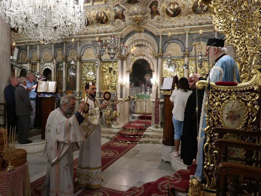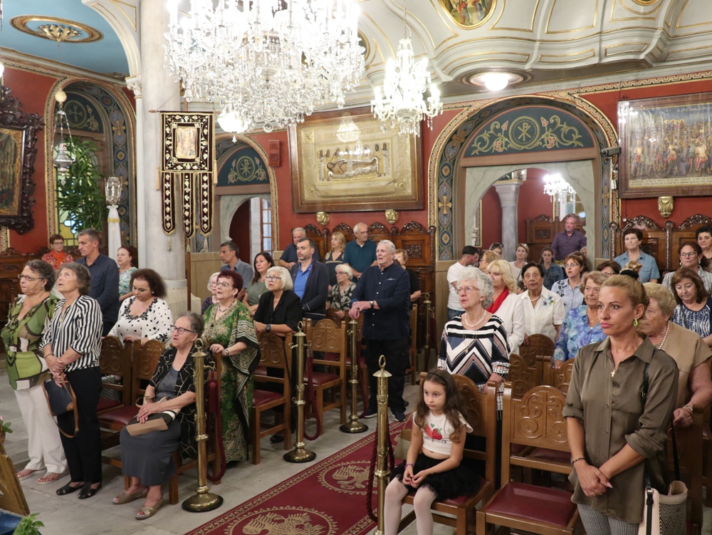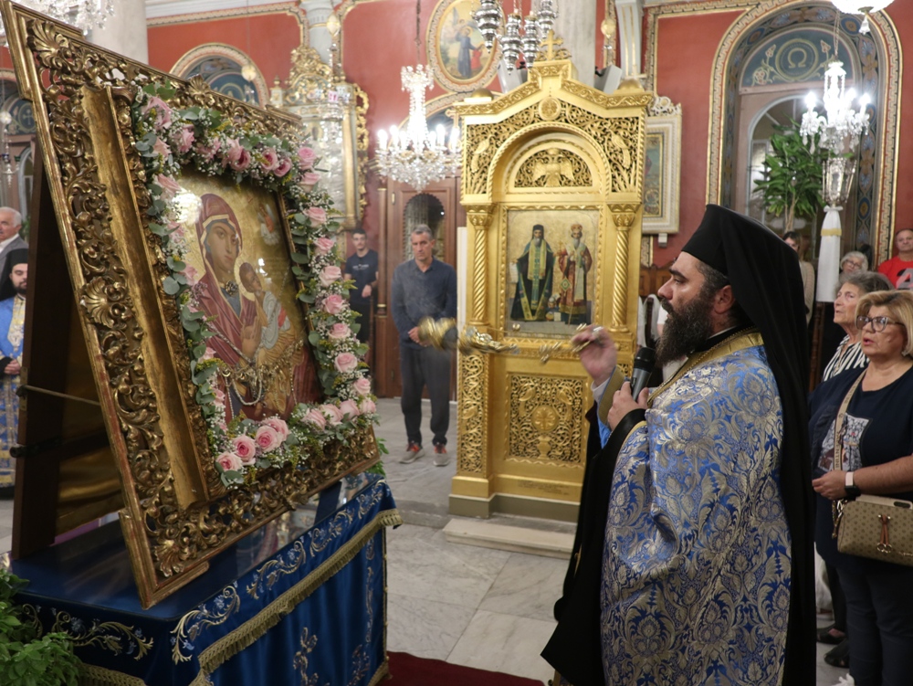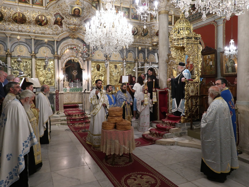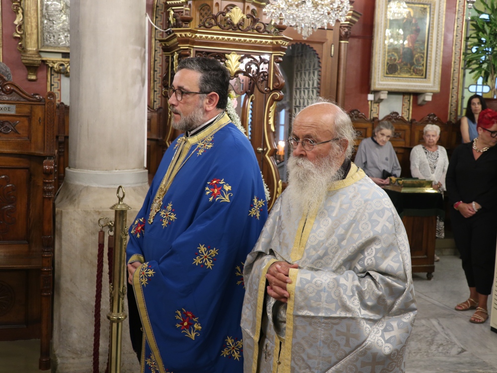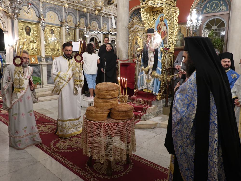 Στον Ιερό Μητροπολιτικό Ναό της Μεταμορφώσεως του Σωτήρος, στην Ερμούπολη, όπου φυλάσσεται από το 1955 η θαυματουργή Εικόνα της Παναγίας της Φανερωμένης, έργο του μεγάλου Αγιογράφου Δημητρίου Γκαφή και έκφραση ευχαριστιών των Ερμουπολιτών προς τη Θεοτόκο, μετά την αποχώρηση των δυνάμεων Κατοχής από το νησί, για τη διάσωσή του από βομβαρδισμούς και καταστροφές, τελέσθηκε χθες Αρχιερατικός Εσπερινός, χοροστατούντος του Σεβασμιωτάτου κ. Δωροθέου Β’, με τη συμμετοχή Εφημερίων της Σύρου και από τη Θεσσαλονίκη και με την παρουσία πολλών πιστών, Συρίων και παρεπιδημούντων επισκεπτών.