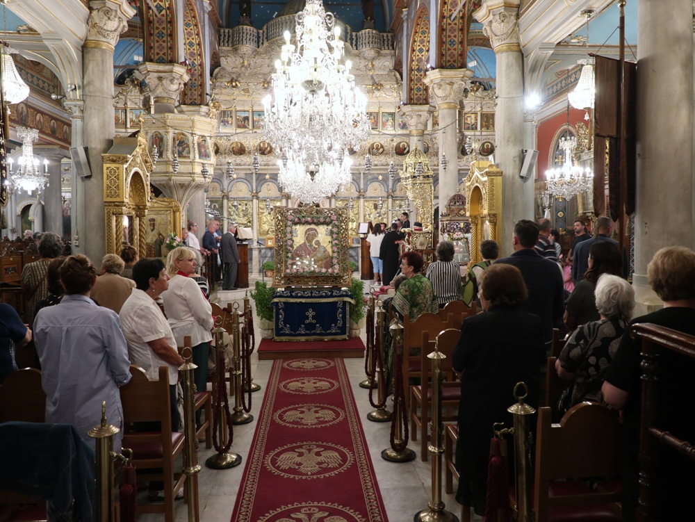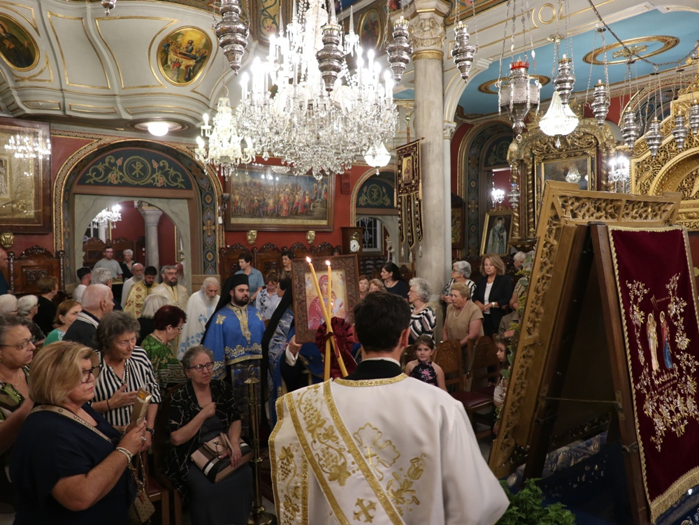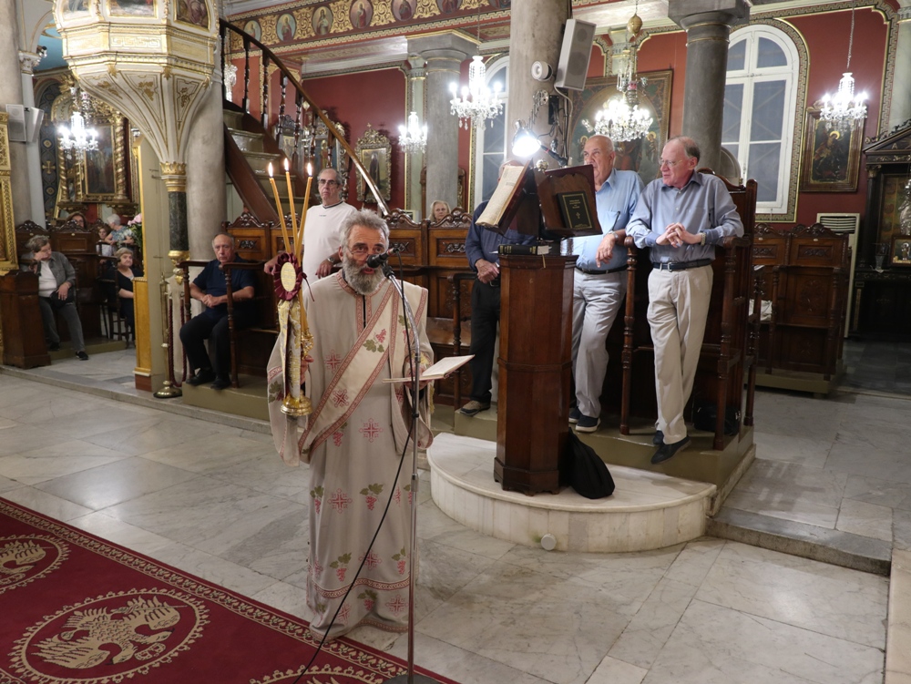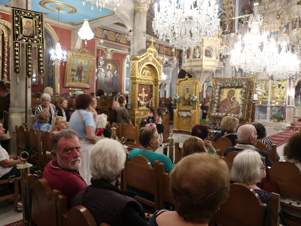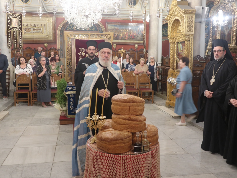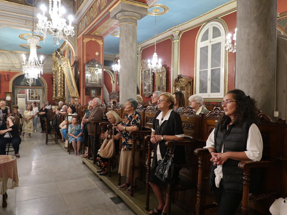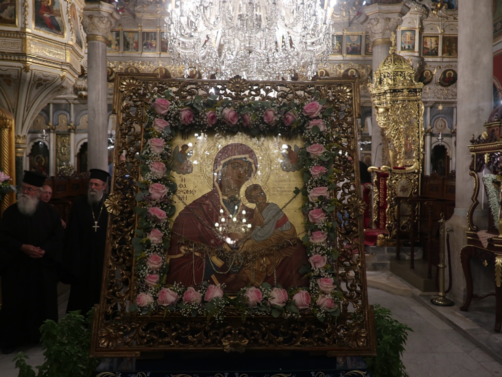 Στον Ιερό Μητροπολιτικό Ναό της Μεταμορφώσεως του Σωτήρος, στην Ερμούπολη, όπου φυλάσσεται από το 1955 η θαυματουργή Εικόνα της Παναγίας της Φανερωμένης, έργο του μεγάλου Αγιογράφου Δημητρίου Γκαφή και έκφραση ευχαριστιών των Ερμουπολιτών προς τη Θεοτόκο, μετά την αποχώρηση των δυνάμεων Κατοχής από το νησί, για τη διάσωσή του από βομβαρδισμούς και καταστροφές, τελέσθηκε χθες Αρχιερατικός Εσπερινός, χοροστατούντος του Σεβασμιωτάτου κ. Δωροθέου Β’, με τη συμμετοχή Εφημερίων της Σύρου και από τη Θεσσαλονίκη και με την παρουσία πολλών πιστών, Συρίων και παρεπιδημούντων επισκεπτών.