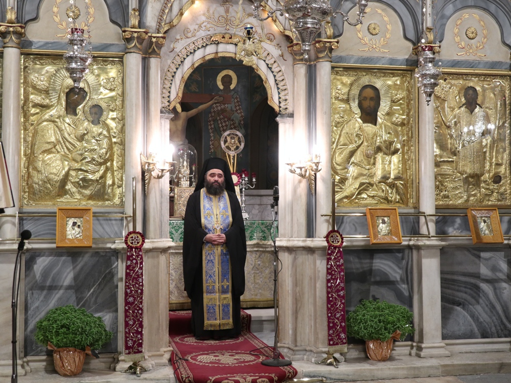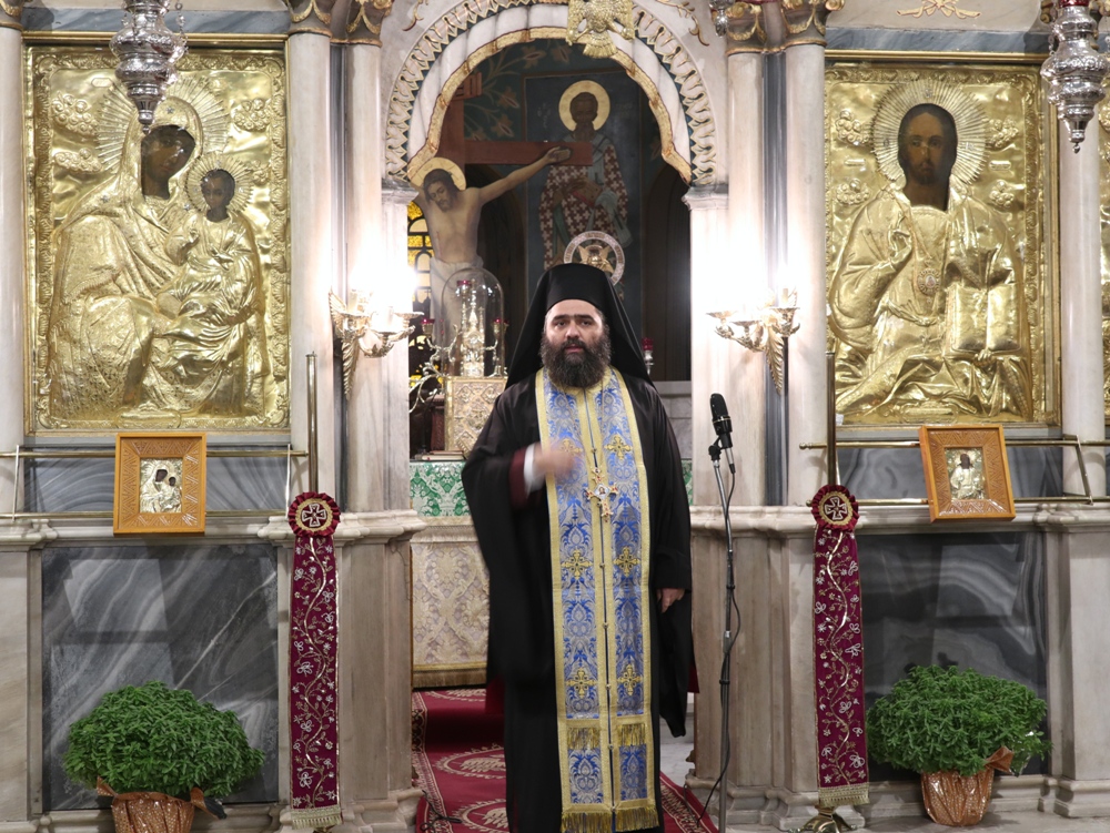 Προ του πέρατος της Ακολουθίας, ο Σεβασμιώτατος κ. Δωρόθεος Β’ ευχαρίστησε και συνεχάρη τους Εφημερίους του Ναού, τους Επιτρόπους και τους Ιεροψάλτες και τους παραστάντες πιστούς, υπογραμμίζοντας ότι η παρουσία και η συνευχητική παρουσία τους τιμά και λαμπρύνει τις εορτές της Εκκλησίας μας.