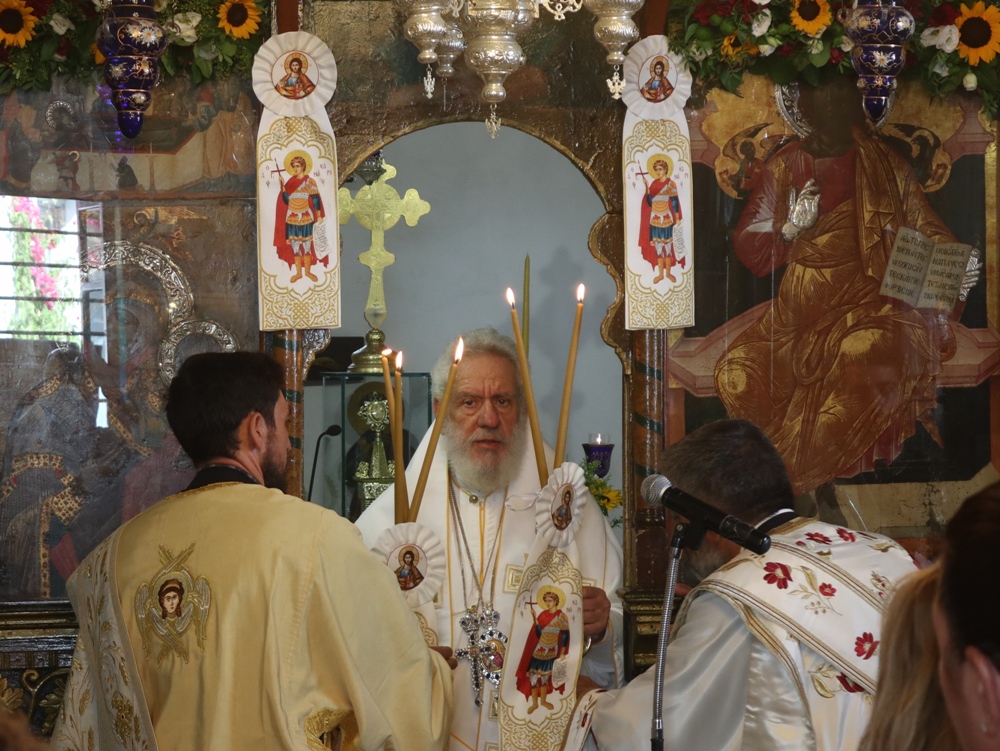 Σήμερα το πρωί, στον ιστορικό και αρχαιοπρεπή Ιερό Ναό του Αγίου Γεωργίου τελέσθηκε η Θεία Λειτουργία, παρόντος του Σεβασμιωτάτου κ. Δωρόθεου Β’ και με τη συμμετοχή του Αρχιερατικού Επιτρόπου Άνω Μεράς και Παλαιοκάστρου και Εφημέριου του Ναού, Πρωτοπρ. Βασίλειου Τζανιδάκη και των Διακόνων Γεωργίου και Νέστορος, τους ύμνους της οποίας απέδωσαν μέλη της Χορωδίας «Αντιφωνικό Μέλος, υπό τη διεύθυνση του Πρωτοψάλτη κ. Γεωργίου Καμαριάρη.