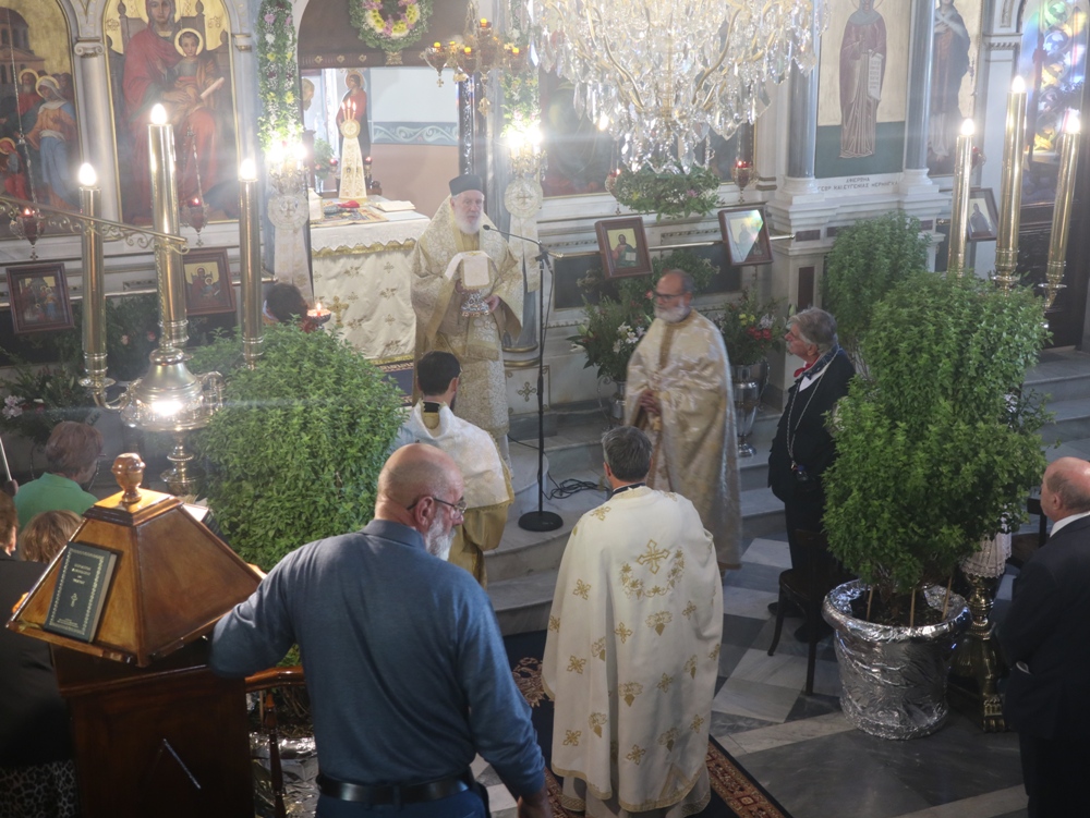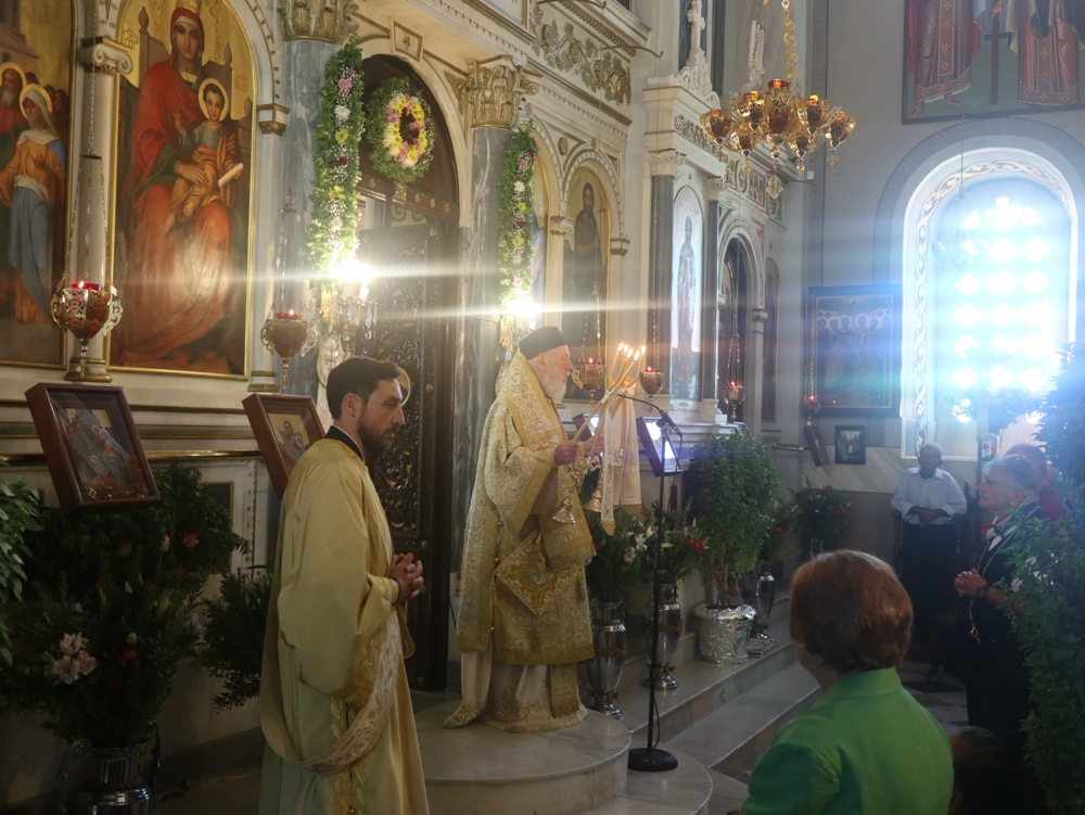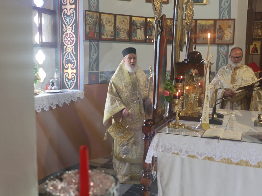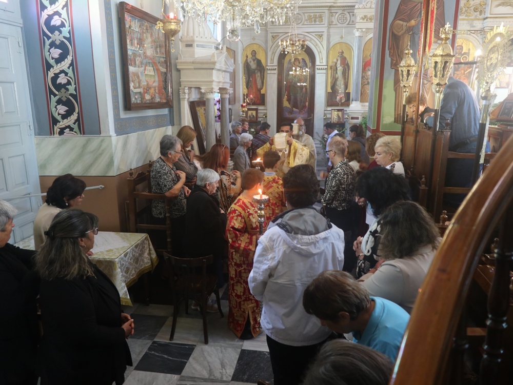 Και σήμερα, ο λαός της Κιμώλου τίμησε τη μνήμη της με Αρχιερατική Θεία Λειτουργία στον κατάμεστο από πιστούς Ιερό Ναό Παναγίας της Οδηγητρίας, ιερουργούντος του Σεβασμιωτάτου κ. Δωρόθεου Β’, συμπαραστατούμενου, ως και εχθές, από τον Αρχιερατικο Επίτροπο Κιμώλου, Πρωτοπρ. Δημήτριο Βεντούρη, τον Αιδεσιμολ. π. Δημ. Φατούρα, από την Ιερά Μητρόπολη Θηβών, και τον διάκονο Νέστορα Παγούνη.