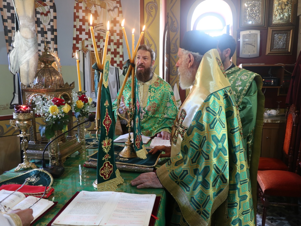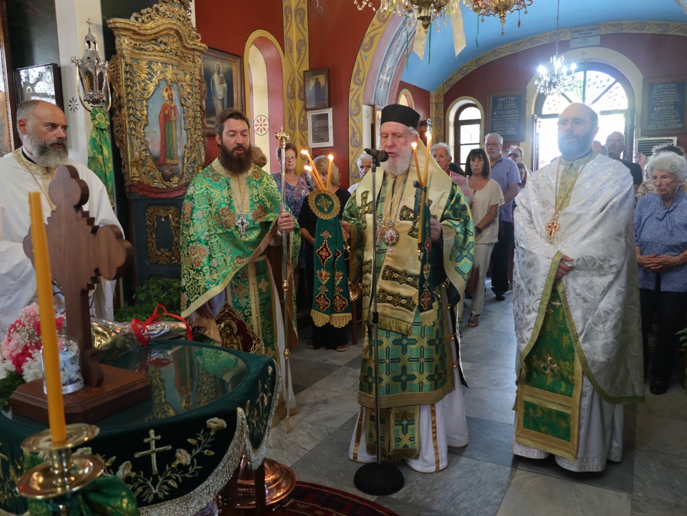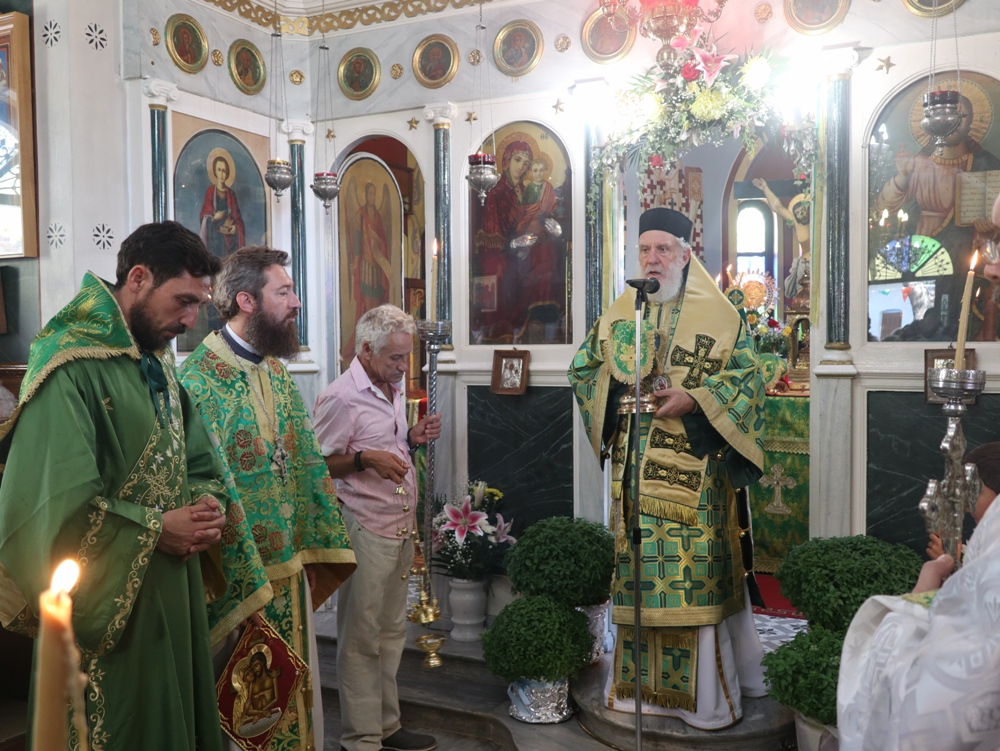 Εν πληθούση Εκκλησία Συρίων και παρεπιδημούντων παραθεριστών, στον Ιερό Ναό του Τιμίου Σταυρού, στην Παρακοπή της Σύρου, τέλεσθηκε σήμερα Αρχιερατική Θεία Λειτουργία ιερουργούντος του Σεβασμιωτάτου κ. Δωροθέου Β’ , συμπαραστουμένου από τον Εφημέριο του Ναού, Αρχιμ. Δημητρίου Πετρομιχελάκη, του Αρχιμ. Ιωάννη Γκουγκούμη, από την Ιερά Μητρόπολη Κηφισίας, και του Πρωτοπρ. Αντωνίου Τριανταφύλλου.