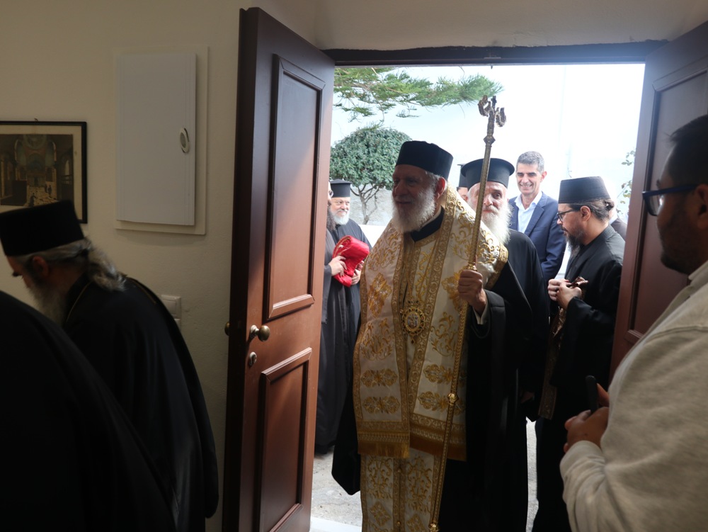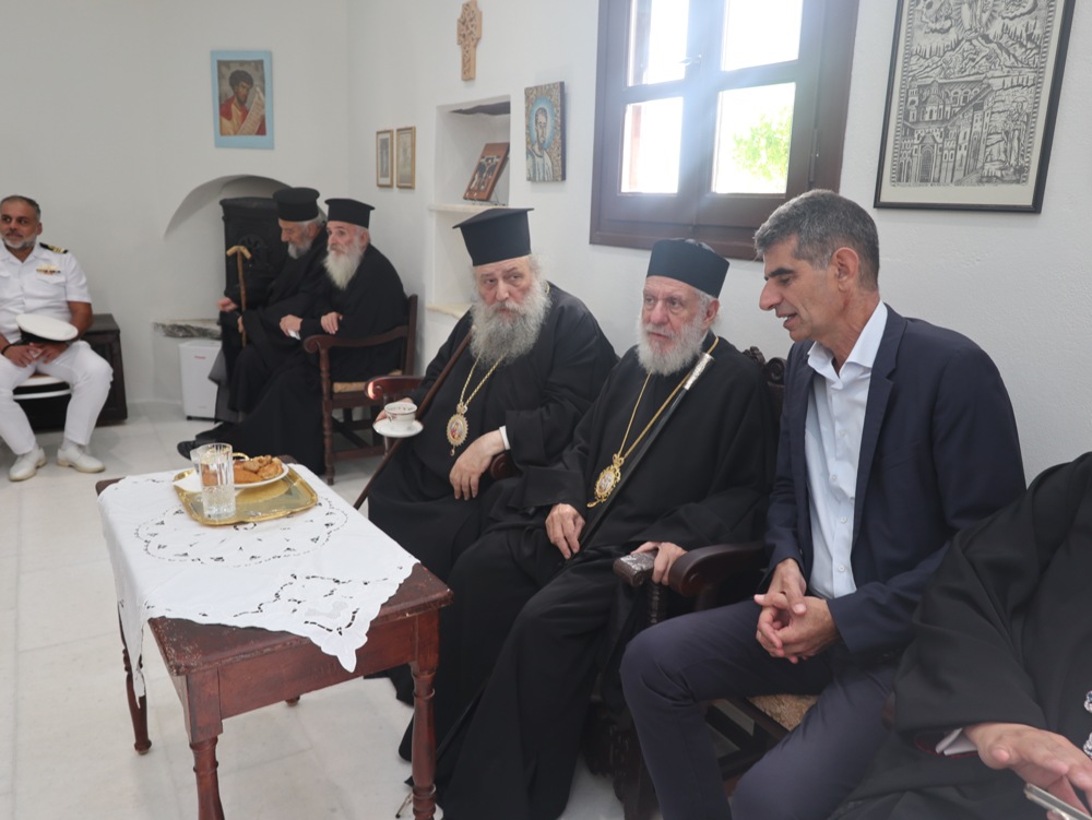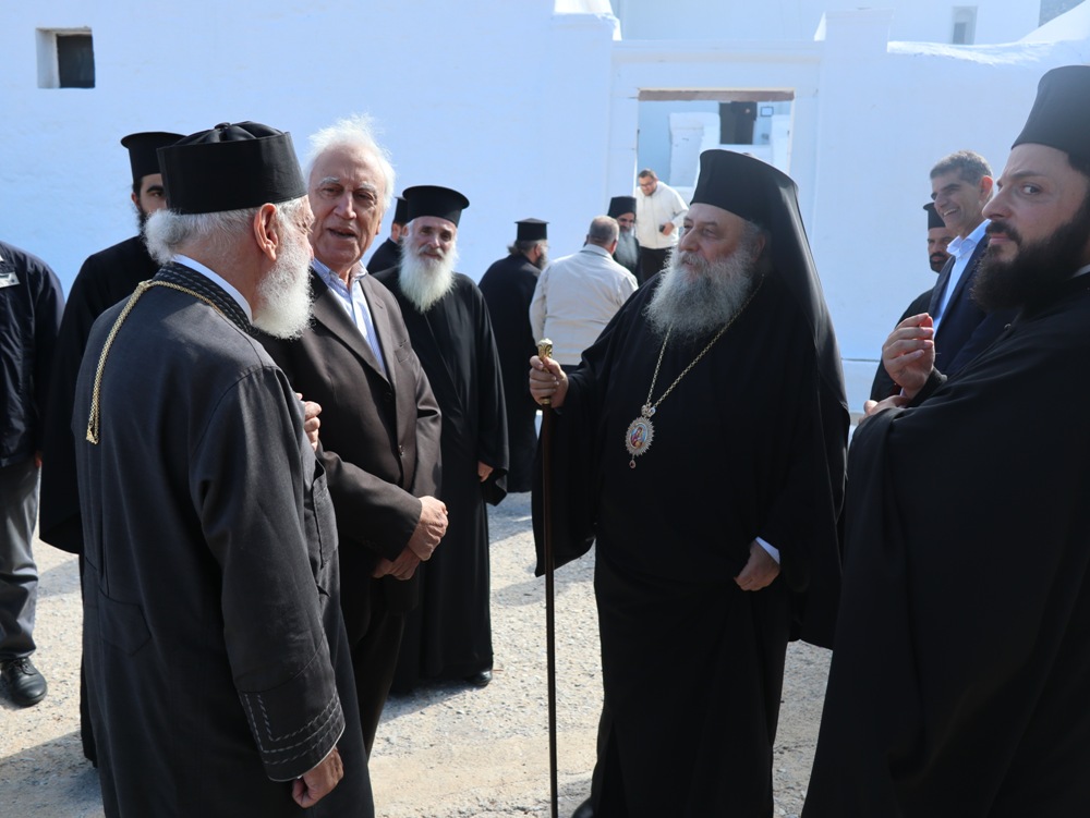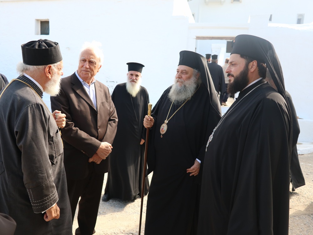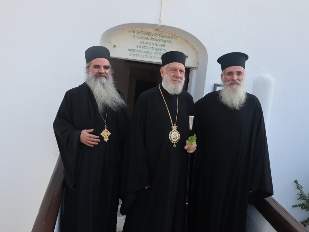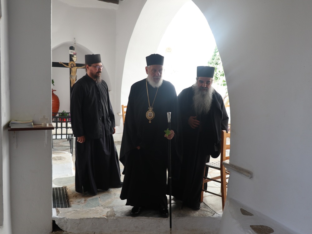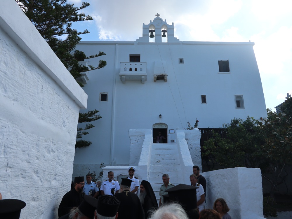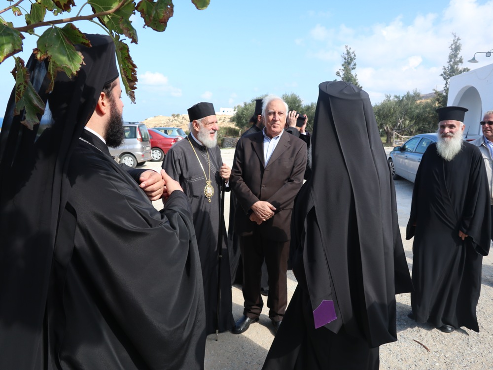 Ο Σεβασμιώτατος κ. Δωρόθεος Β΄ μετέβη σήμερα το πρωί από τη Μύκονο στη Νάξο, και συγκεκριμένα στην Ιερά Μονή Φανερωμένης, τελουμένης της Θείας Λειτουργίας υπό του άγοντος τα ονοματήριά του, επιχωρίου Επισκόπου, Σεβασμιωτάτου Μητροπολίτου Παροναξίας κ. Καλλινίκου, συμπαραστατουμένου από τους Εφημερίους της νήσου, τη συμμετοχή του Ηγουμένου της Μονής, Αρχιμ. Χρυσοστόμου και της περί αυτόν Αδελφότητος και την παρουσία του Δημάρχου Νάξου, του Επάρχου, του διατελέσαντος Βουλευτού κ. Χατζηανδρέου, του Αστυνομικού Διοικητή, του Λιμενάρχου, του Διοικητή και του Υποδιοικητή του Ναυτικού Παρατηρίου, του Διοικητή του Τάγματος Εθνοφυλακής Νάξου και πλήθους πιστών.